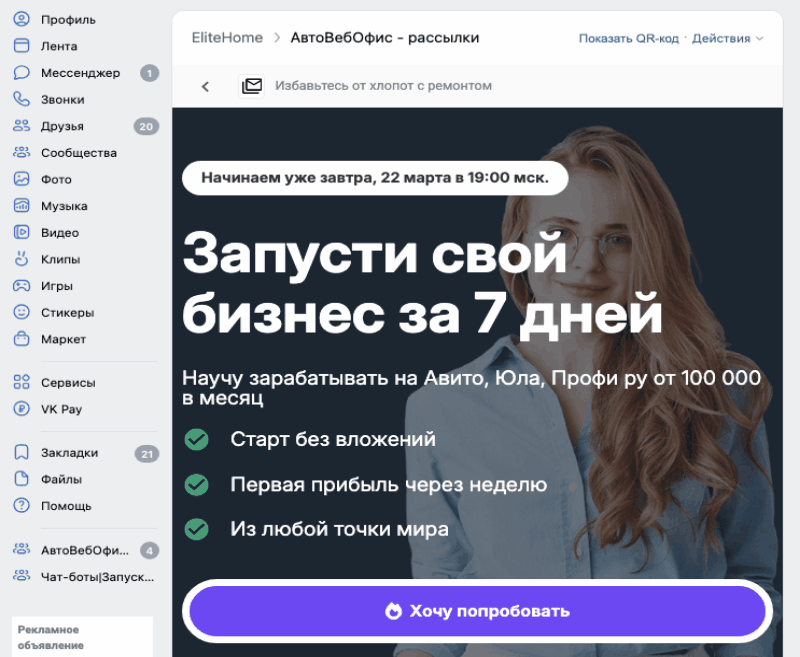 АвтоВебОфис даст Вам все необходимые инструменты для создания автоворонок в ВК и Телеграм.